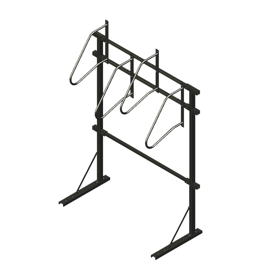 The Double Sided X1 Vertical Bike Rack is not only free-standing, but comes in multiple configurations, including single or double sided, and secures multiple bikes (3, 4, 5, 6 bikes secured). The Double Sided X1 Vertical Bike Rack is also modular, so you can build out or in to your desired space requirements or availability.